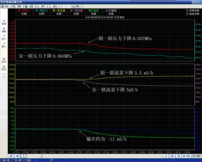 2009年12月18日朝一聯(lián)-宋一聯(lián)管線泄漏系統(tǒng)報警曲線