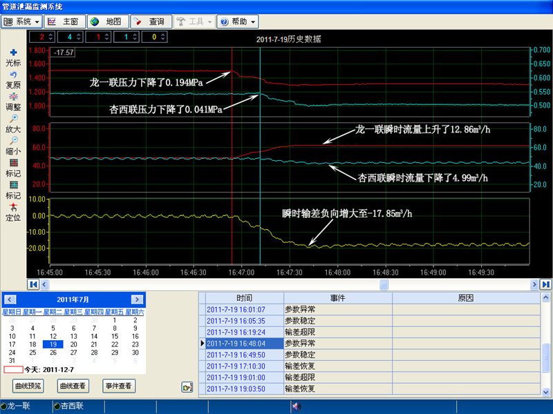 7月19日龍一聯(lián)-杏西聯(lián)管線泄漏報(bào)警曲線圖